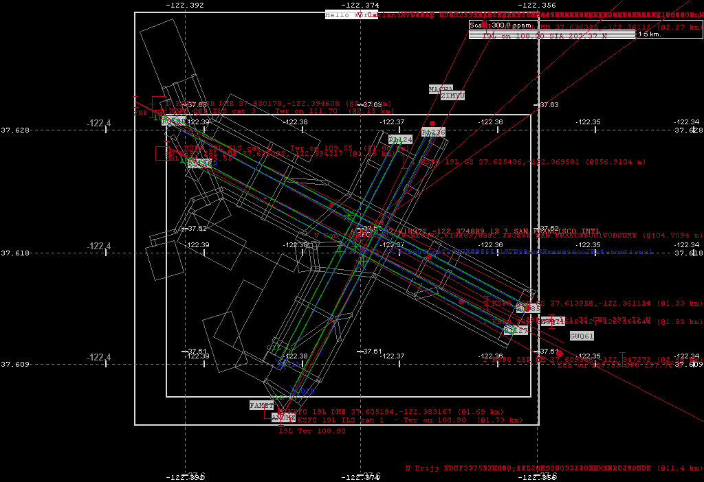 This is a relatively calm view of KSFO using all three sets of data, and same world coords-to-pixel (maybe bad!) math for allignment.